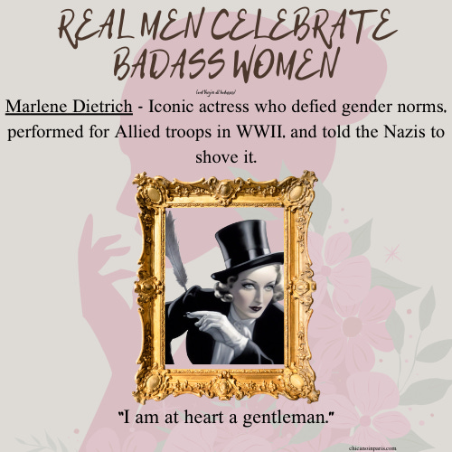 I am going to take the thirty-one days in March and celebrate thirty-one of my favorite badasses throughout history in meme form. To start the month: the primary reason I am obsessed with women in suits. Marlene Dietrich.
